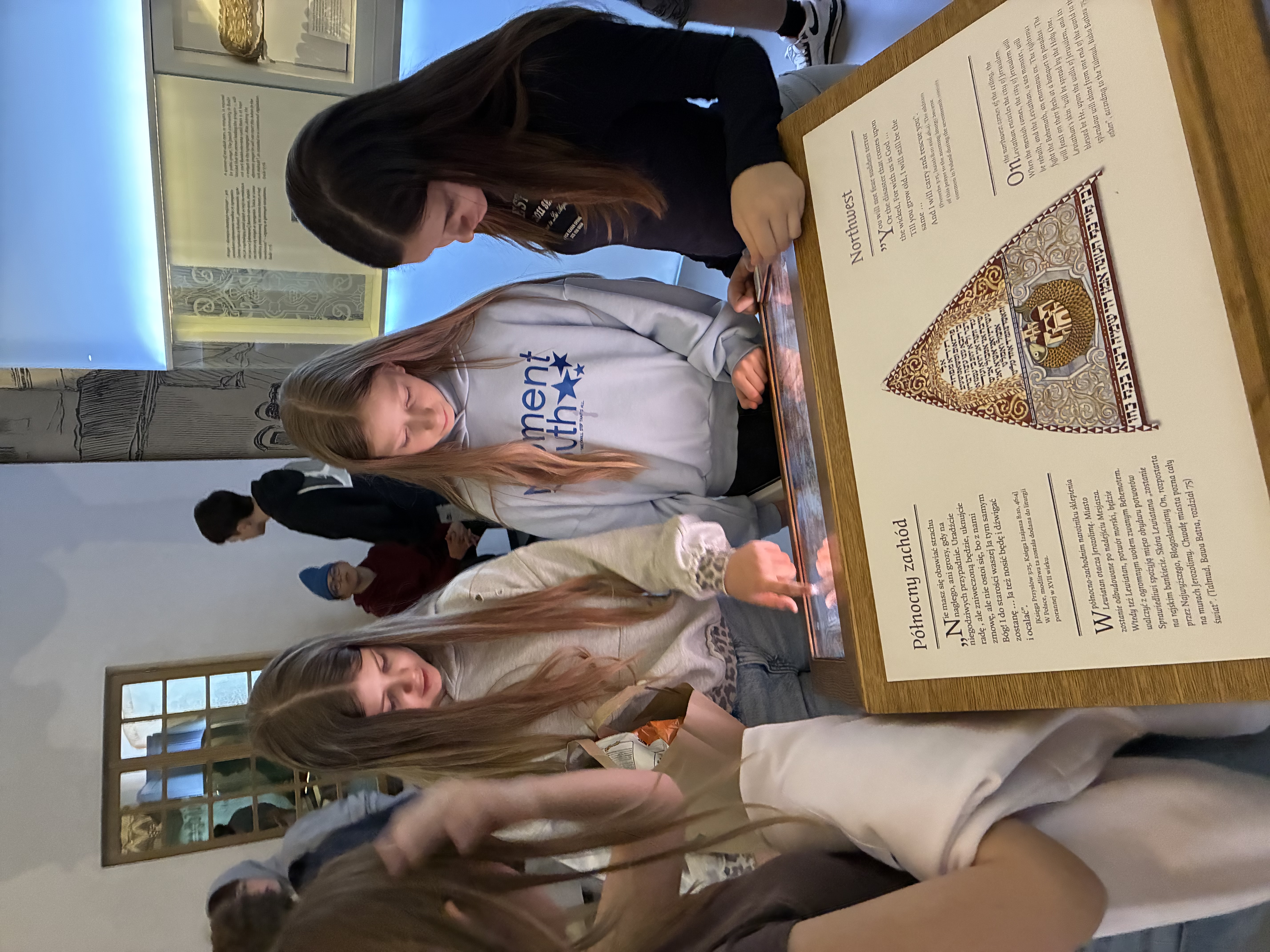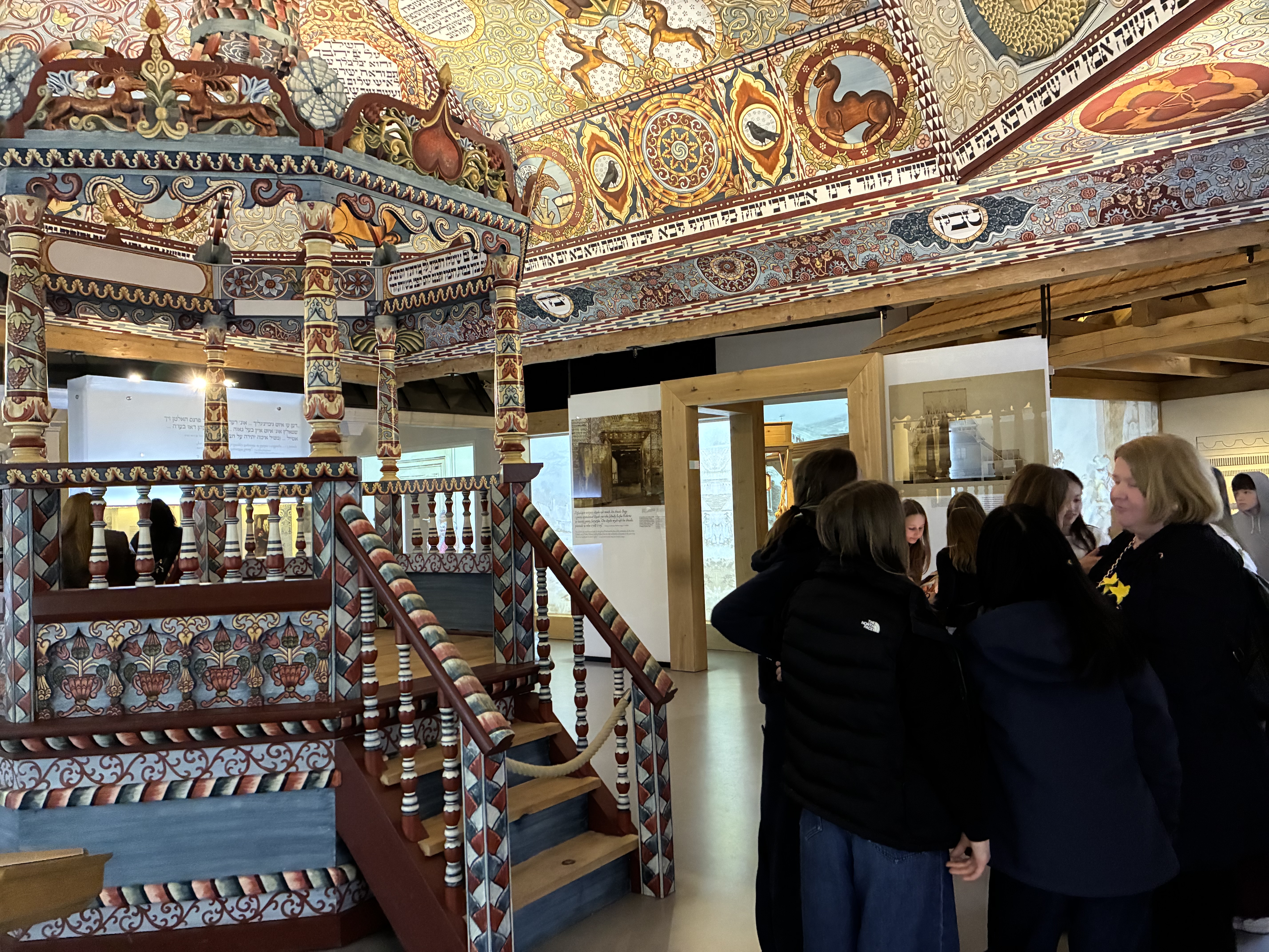Die Nożyk-Synagoge war aufgrund des Konflikts im Nahen Osten geschlossen, daher besuchten sie das Museum POLIN, wo sie eine rekonstruierte hölzerne Synagoge aus Gwoździec besichtigten.