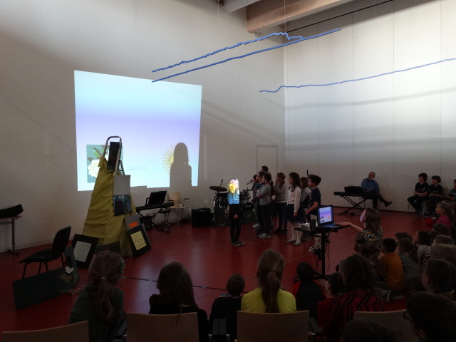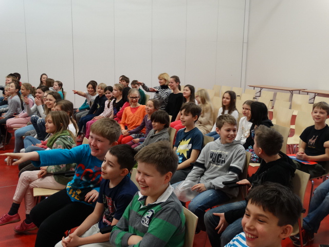 Wie jedes Jahr versammelten sich in der Aula der Willy-Brandt-Schule alle Grundschulklassen, das erste Mal in der neuen Schule, die zugleich mit fröhlicher Frühlingsstimmung bunt wurde. Der letzte Tag vor den Osternferien, eine Woche nach offiziellem Beginn des Frühlings feierten wir mit vielen tollen Beiträgen wie Bilder, Filme, Aufführungen, Gedichte, Lieder, Tänze das F R Ü H L I N G S F E S T.