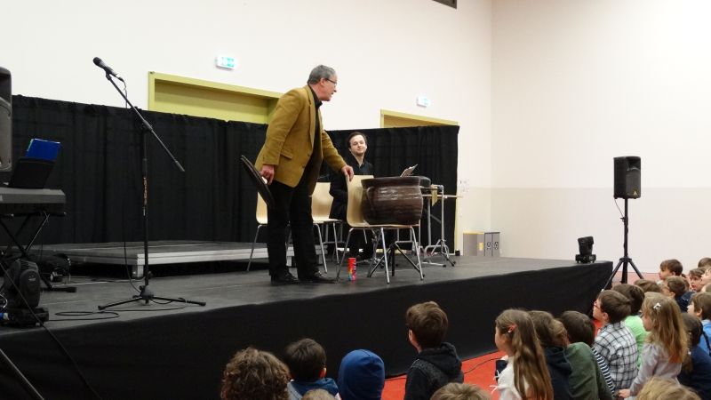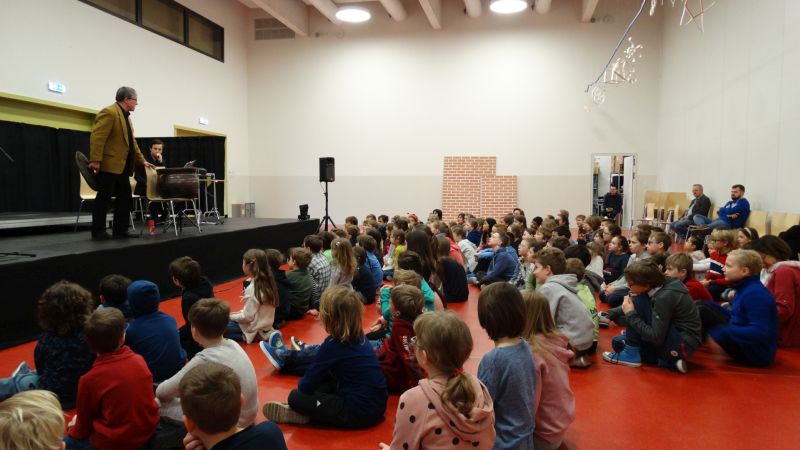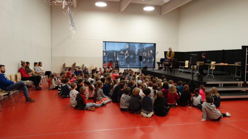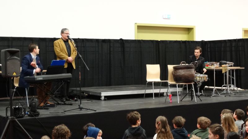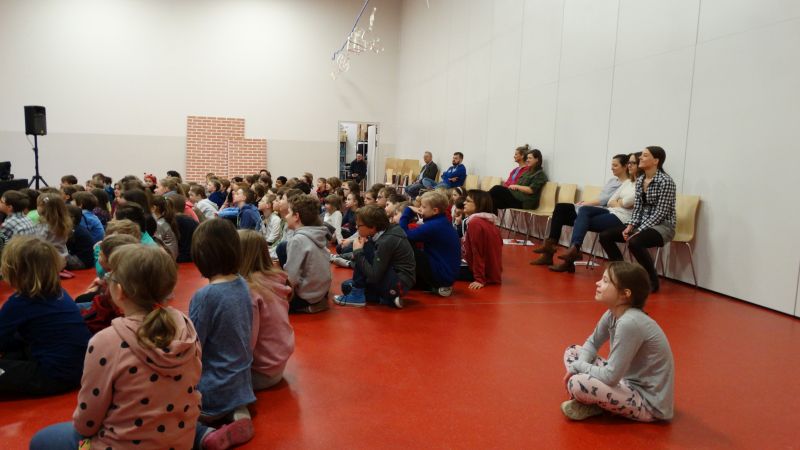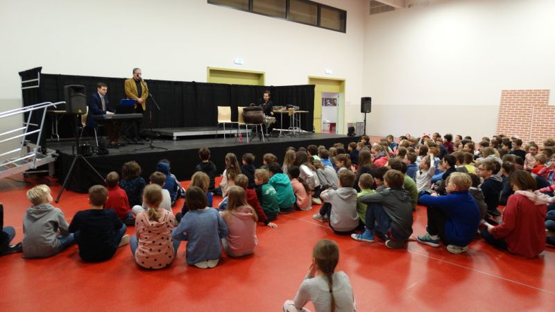 Am letzten Freitag bekamen wir wieder den Besuch der Musiker der Warschauer Nationalphilharmonie, die uns diesmal Musik und Gedichte zum Thema „Der Zauberkessel“ präsentierten. Dutzende von Kindern der Grundschule (Erwachsene inbegriffen) hörten begeistert zu und applaudierten den Artisten.