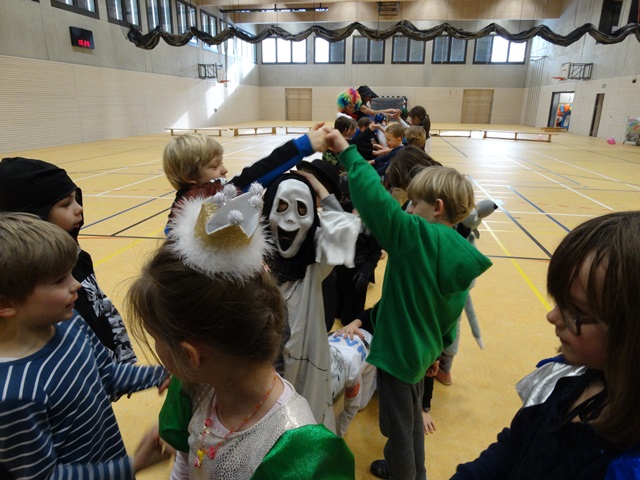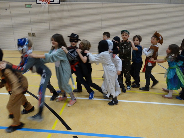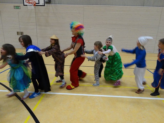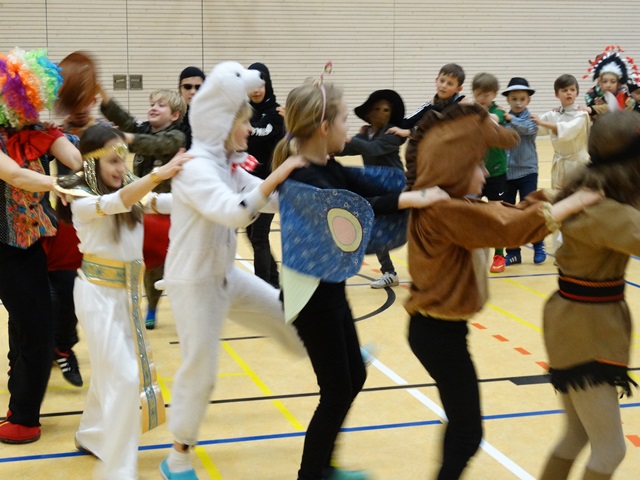 Der Mittwoch, der 4. Februar 2015 hat verschiedenen, merkwürdigen Gestalten, historischen Persönlichkeiten sowie den Komikfiguren gehört. Alle Schüler der Klassen 1-4 wurden an diesem Tag in der Sporthalle von einer sehr netten Hexe, einer tänzerischen Fee und einem schrecklich lauten Clown begrüßt. Alle durften an dem Tag ihre Lieblingsverkleidung anziehen und den Karneval voll genießen.... Wir haben eine schöne Kleopatra, einen ernsten Mozart, einen lustigen Konsmonauten und viele andere fantastische Gestalten gehabt.