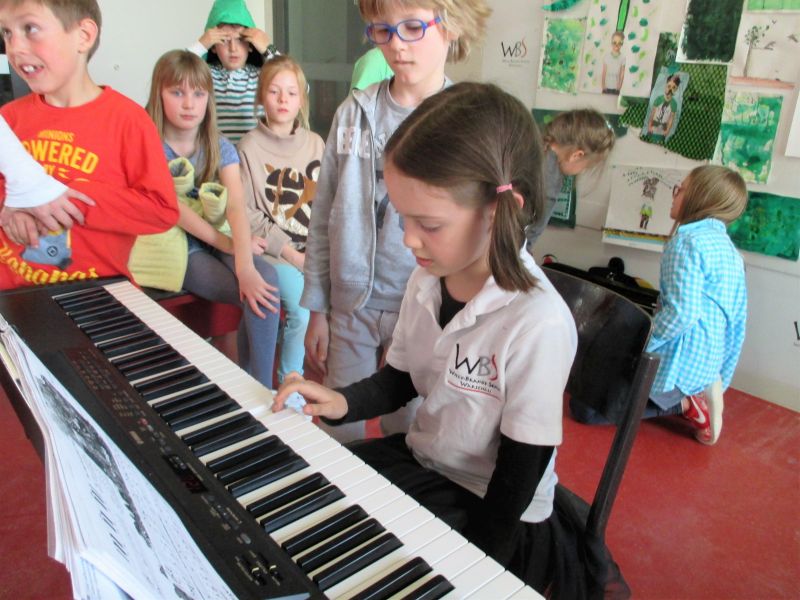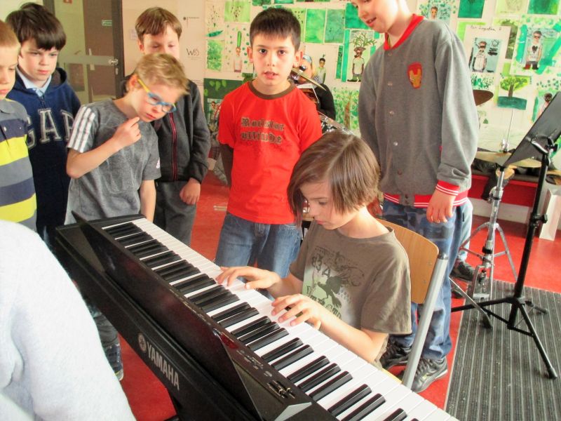 In der Woche 26.-29. April hat die Musikakademie WBS eine Musikwoche in unserer Schule organisiert. Jeden Nachmittag haben viele unsere Schüler Solo, Duett und in Bands gespielt. Sie spielten Klavier, Schlagzeug, Xylophon, Geige, Trompete, Gitarre und haben gesungen. Alle hatten viel Spaβ und Freude daran.