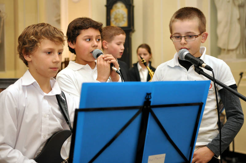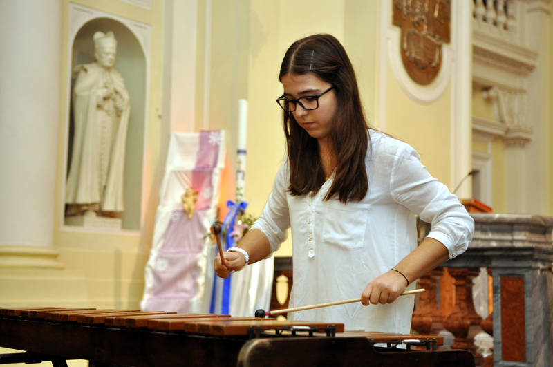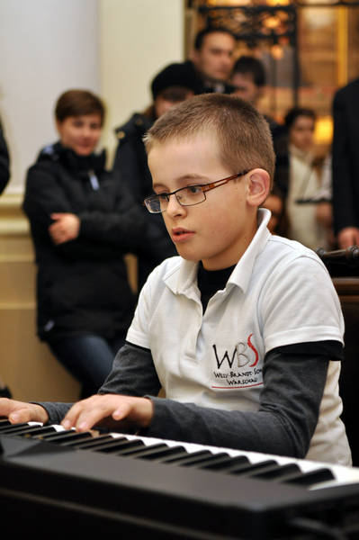 Die klassische Stimmung wurde mit dem Auftritt der Schulband aus den Klassen 4–7 unterbrochen, die drei Lieder in Rockbearbeitungen gespielt und gesungen hat. Danach wurde es wieder klassisch mit dem Auftritt des Flötentrios Linda Wesche / Theresa Jarczyk / Vera Wesche und eines Gastes aus der befreundeten Moniuszko Musikschule: Wiktor Wysocki, der Klarinette spielte.